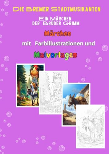 Die Bremer Stadtmusikanten Ein Märchen der Brüder Grimm: Märchen mit Farbillustrationen und Malvorlagen