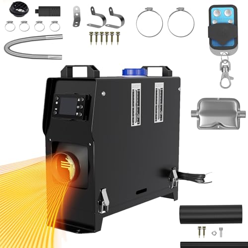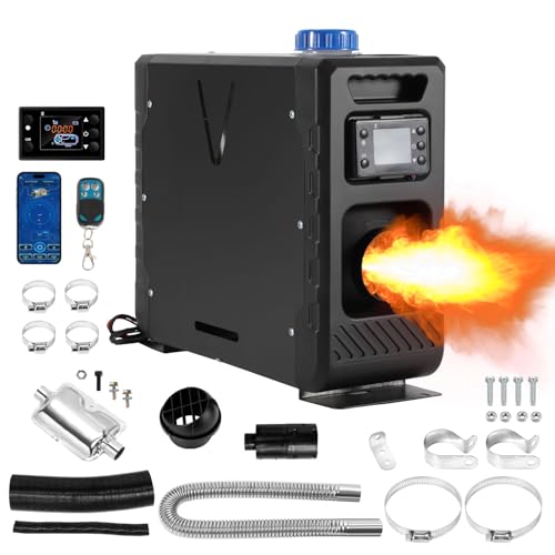 Sonnewelt Dieselvärmare, 8 kW, 12 V, luftvärmare, dieselvärmare med Bluetooth-app-styrning, LCD-strömbrytare, display och fjärrkontroll för husbil, bil, husvagn, båt, husvagn, svart