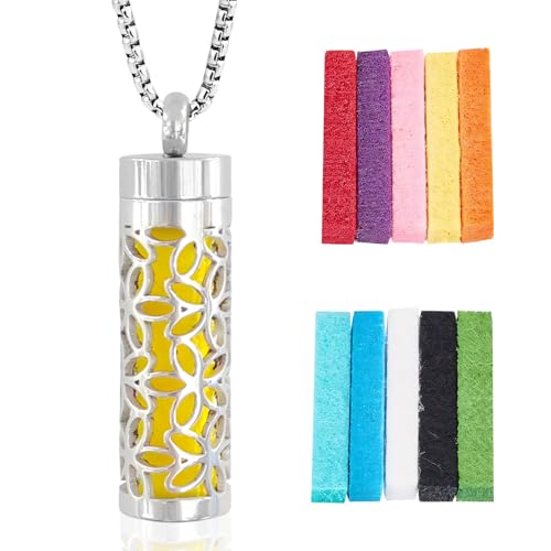 Halsband med eterisk olja, Halsband Diffuser för damer med 10 st parfymkuddar Rostfritt stål Oljehalsband Smycken Present Aromaterapipresenter för kvinnor män (stil 2)