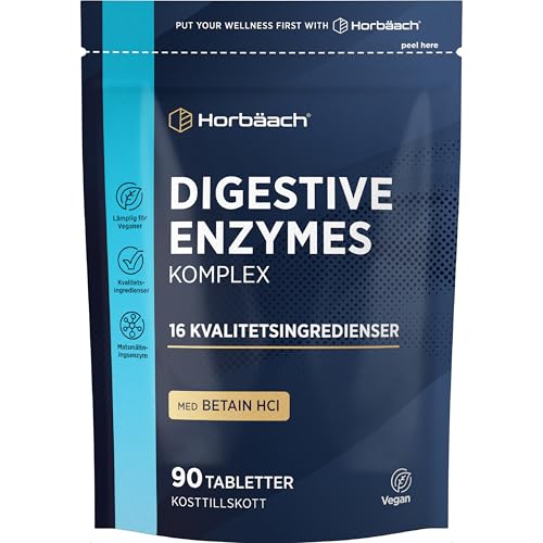 Matsmältningsenzymer med Betain HCl | Kosttillskott Som Ger Laktas och Proteas | 90 Veganska Tabletter | Digestive Enzymes Supplements | av Horbaach