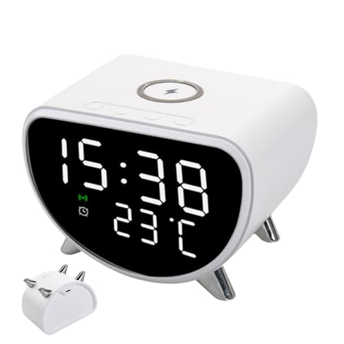Alarm Clock with Wireless Charging, Digital Alarm Clock Gauge, 4.33x3.11x2.55inch Portable Sturdy Fast Charger Station, Sleep Timer, Ideal for Bedroom, Table, Workstation