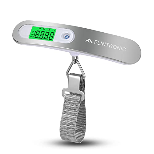 Flintronic Elektronisk bagageväg, bärbar digital våg max 50 kg/110 lb (LB, g, oz,kg) med tare-funktion och bakgrundsbelyst LCD-skärm, väger resväska, reseson (inget batteri)