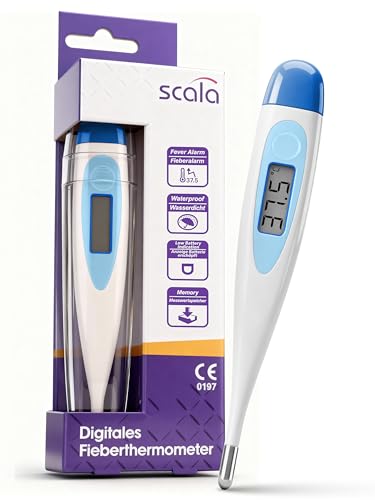 scala SC 17 blå digital febertermometer med feberalarm vattentät och lätt att rengöra. För barn, spädbarn och vuxna för att mäta kroppstemperaturen oral, axial eller rektal