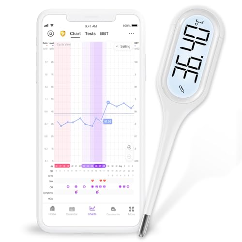 Easy@Home basal digital kroppstermometer, BBT och snabbt läge med mjukt munstycke för att upptäcka ägglossning med PREMOM-appen, febertermometer för spädbarn barn vuxen