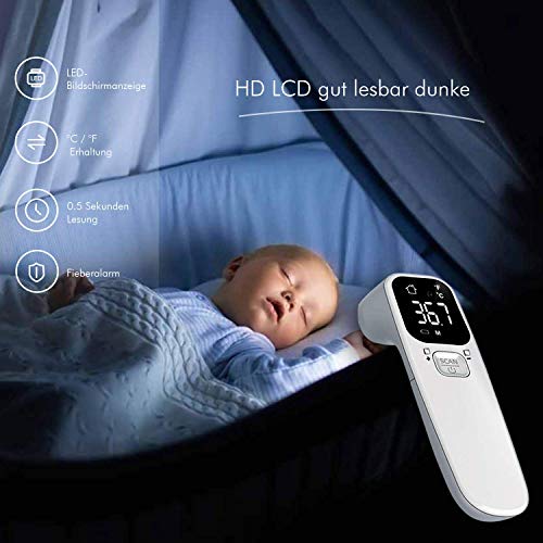 Retoo Febertermometer panntermometer digital termometer infraröd för spädbarn och vuxna temperaturmätare hygienisk feberalarm LCD-display 20 minneshemang vit