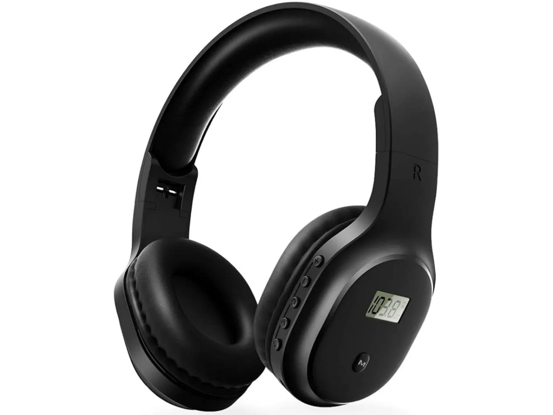 Hörlurar F2 Bluetooth, FM-radio eller via kabel & digital display samt klocka