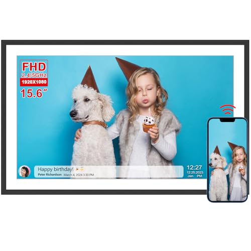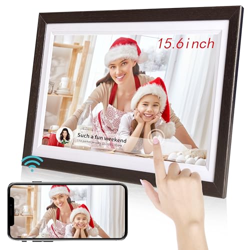 15,6-tums WiFi digital fotoram med 1920 x 1080 FHD IPS pekskärm, skicka foton eller videor via app eller e-post, 32 GB lagring, kompatibel med