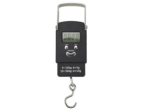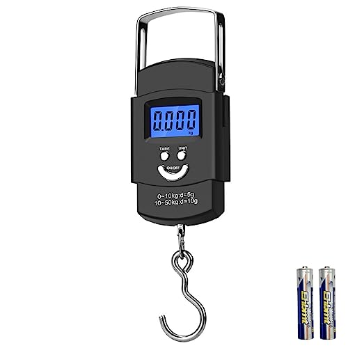 Retoo Bärbar LCD digital bagagevåg, bagagevåg, hängvåg med bakgrundsbelyst digital display upp till 50 kg, elektronisk fiskvåg för hemmabruk, resor, utomhus, tarafunktion