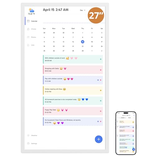 Dragon Touch-kalender, 27 tums digital kalender 2025 väggplanerare för familj, 1080P Full HD interaktiv pekskärm, smart syseldiagram och hemorganisation, present för upptagna familjer schemaläggning