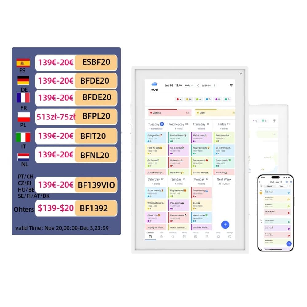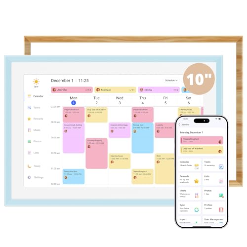 Denash 10.1 "Smart Digital Kalender med HD -pekskärm, Familjeplanerare med Interaktivt Jobbdiagram och Måltidsplanering, Digital Fotoram och Smart Hemorganisatör