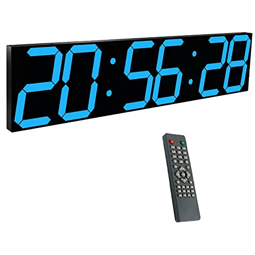27-tums LED Digital Väggklocka Med Fjärrkontroll, 8-nivåers Ljusstyrka, Automatisk Dimmer, Larm, Kalender, Termometer, For Industrilager Cafeteria Gym (Color : Blue)