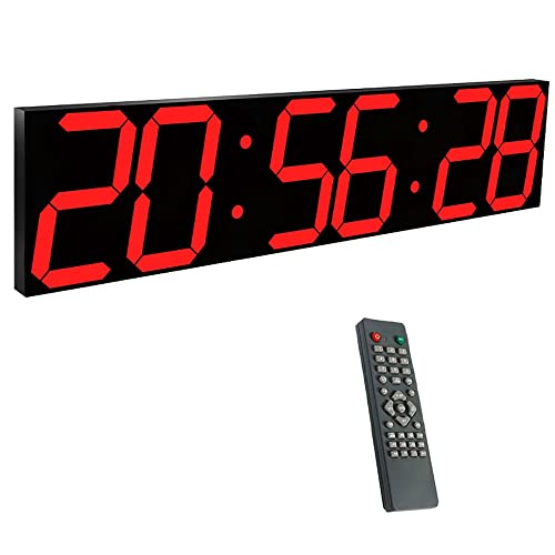 27-tums LED Digital Väggklocka Med Fjärrkontroll, 8-nivåers Ljusstyrka, Automatisk Dimmer, Larm, Kalender, Termometer, For Industrilager Cafeteria Gym (Color : Red)