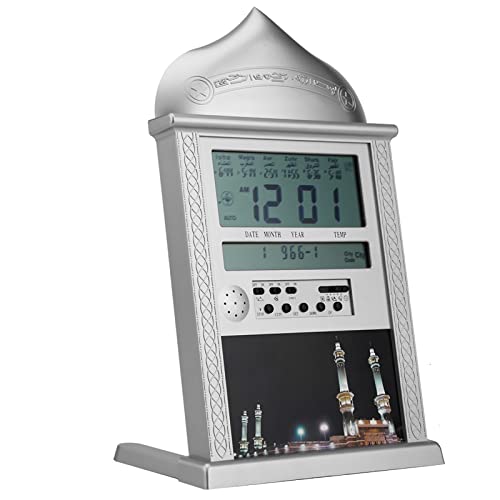 Oumefar Muslimsk islamisk bönklocka , silver , digital kalender , tidsvisning , väckarklocka för bön , azan athan , väggklocka (inget batteri)