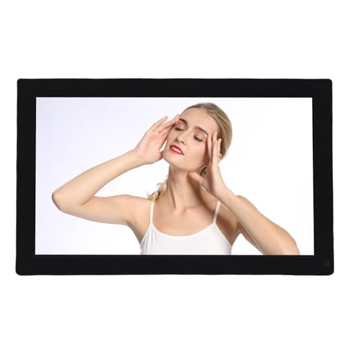 15-tums digital fotoram, 1280 x 800 HD digital fotoram med pekskärm, inbyggd mikrofonstativ, väckarklocka, kalender, videomusikspelare, för familj (svart)