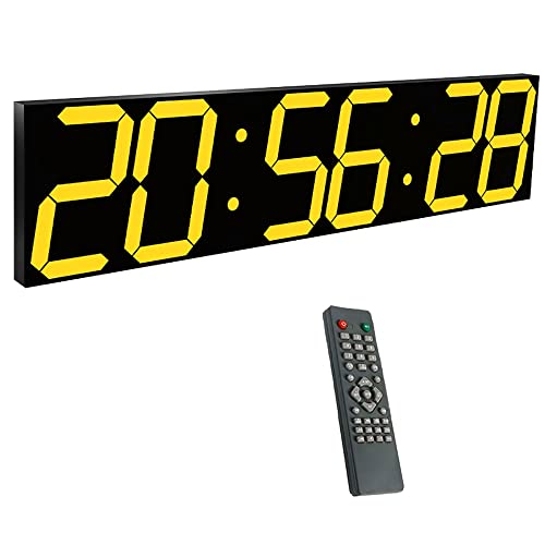 27-tums LED Digital Väggklocka Med Fjärrkontroll, 8-nivåers Ljusstyrka, Automatisk Dimmer, Larm, Kalender, Termometer, For Industrilager Cafeteria Gym (Color : Gold)