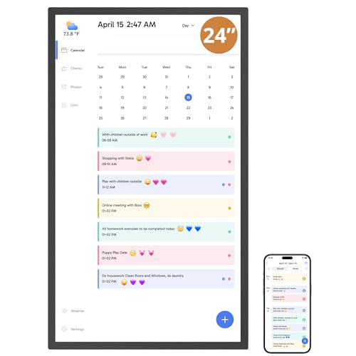 Dragon Touch-kalender, 24 tums digital kalender 2025 väggplanerare för familj, 1080P Full HD interaktiv pekskärm, smart syseldiagram och hemorganisation, present för upptagna familjer schemaläggning