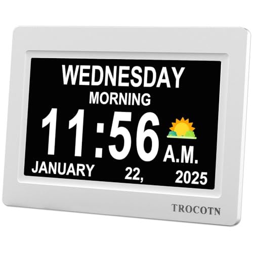 TROCOTN demensklocka, digital klocka med datum och dag för äldre, dag datum stor display kalender (18 cm vit)