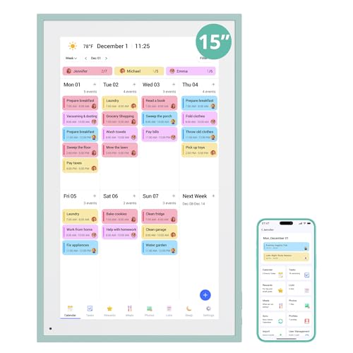 NEWYES Digital kalender 15,6 tum – WLAN familjeplanerare och digital fotoram för familjevardagen, 32 GB minne, pekskärm och app – familjeorganisering med Google/iCloud kalender synkronisering