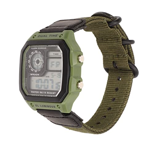 Tbest Herrklocka digital sportklocka kanvas rem lysande klocka vattentät retro armbandsur för utomhussport (grön)