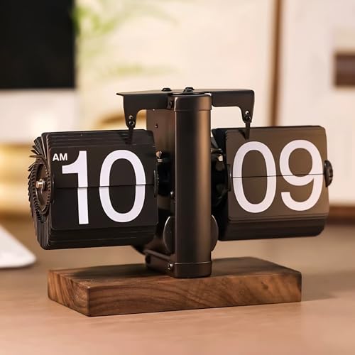 Ejoyous Flip Clock, retro flip klocka bord stående klocka vintage bordsklocka fällur skrivbordsklocka digital flip down-klocka med intern kugghjulsdrift för vardagsrummet hemma