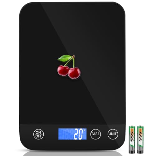 Tekenewbse Digital köksvåg, 10 kg/1 g med stor LCD-display och 2 batterier, svart finvåg, köksvåg, hushållsvåg för köksvågarna, digitalvåg Food Scale, livsmedelsvåg