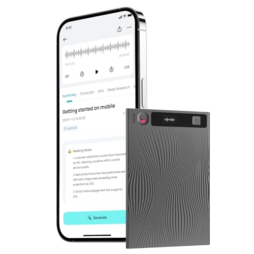 Plyisty AI -röstinspelare med Appkontroll, Digital Ljudinspelare med Transkribera & Sammanfatta, 100+ Språk, Magnetiskt Fall, för Föreläsningar, Möten, Intervjuer (16g)