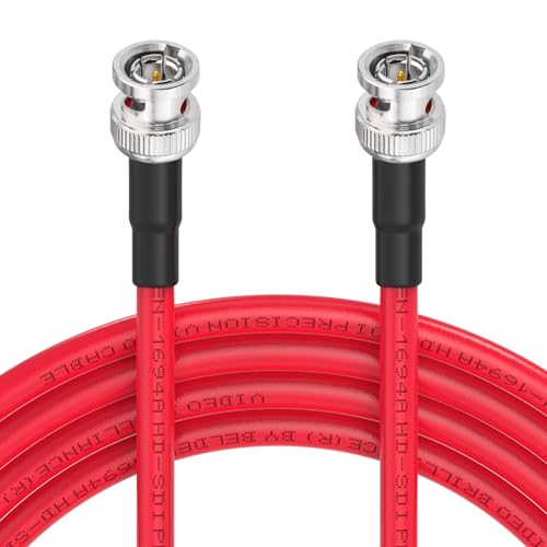 Superbat SDI 3G/6G/12G kabel 3 m BNC digital ljudkabel hane till Belden 1694A 75 ohm röd för kamera och videoutrustning, stöder HD-SDI/3G-SDI/4K/8K(2 st)