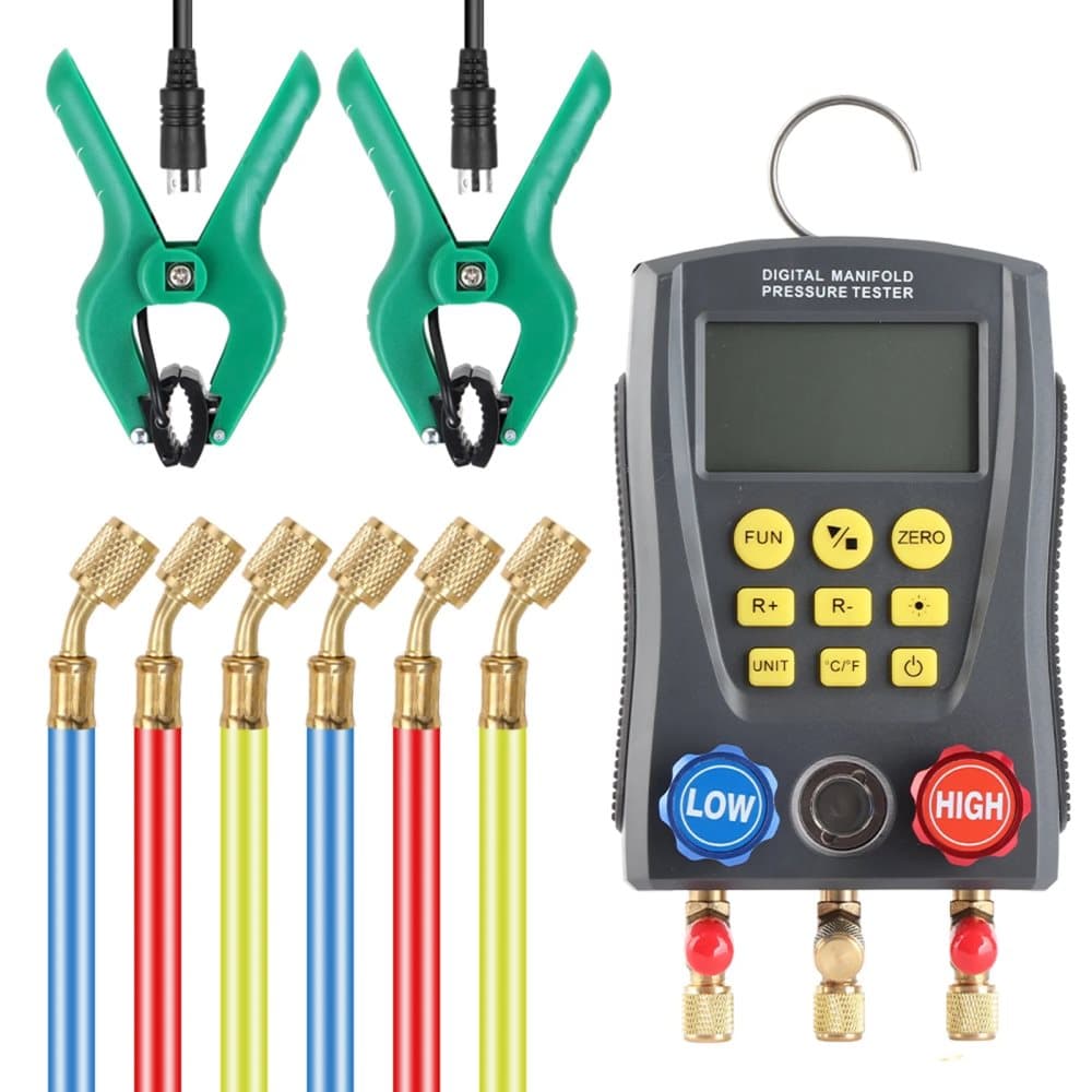 HVAC/Kylsystem - Digital Manifold Manometer - 0–6000 kPa - Vakuum & Tryck - Temperaturmätning - Med ventiler - CE-certifierad - Svart