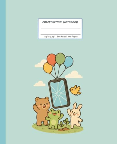 Cartoon Animal Notebook – Digital Detox Cover | Tiere Notizbuch: Cute College Ruled Journal with Funny Animals Watching a Phone Fly Away | Süßes liniert
