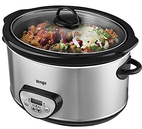 Venga! VG SC 3008 Digital Slow Cooker (långsam kokar), med keramisk kruka och timer, 4,5 liter, 280 W – svart/rostfritt stål