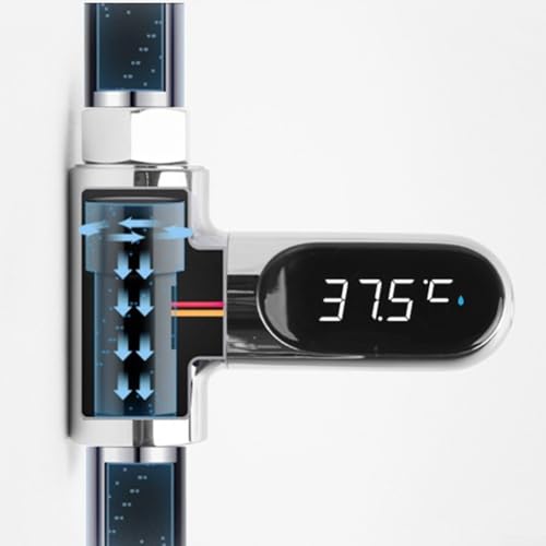 LED digital vattentemperaturmätare, självgenererande elektricitet duschtermometer 360° roterande displaykran temperaturmätare