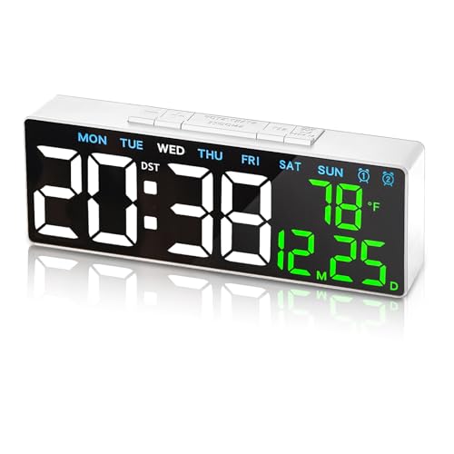 Lafocuse Digital väggklocka LED stor display 13 tum, digital klocka med fjärrkontroll, temperaturdisplay, datum, väckarklocka, ljusstyrka justerbar, 12/24 HR, lätt att läsa för vardagsrum kök kontor