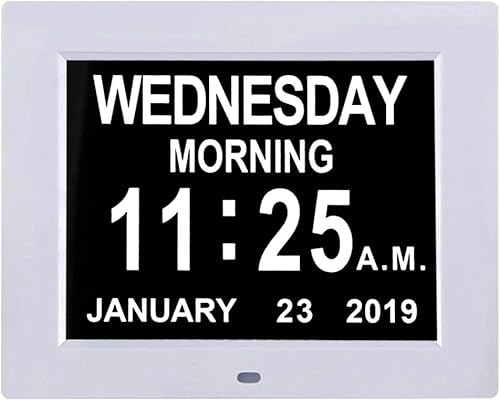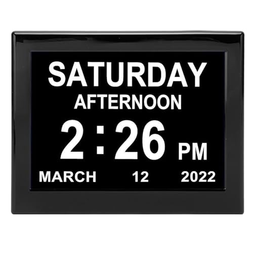 Nyaste Demensklocka Stor Digital Klocka för Seniorer, 8 Tum Stor Displayklocka med Dag och Datum för äldre med 3 Grupper Medicinpåminnelser 12 Grupper Väckarklocka ()