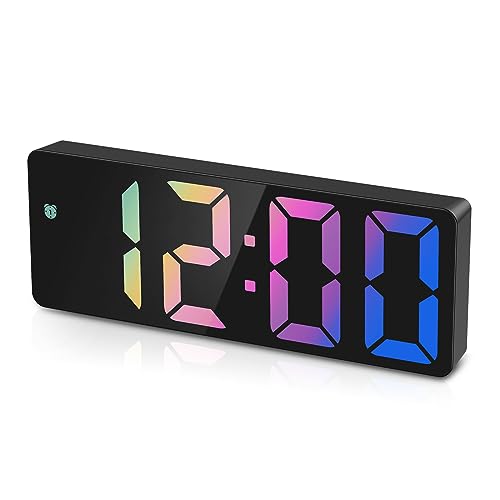 OQIMAX Väggklocka Digital Stor 12'' LED Digital Väggklocka med RGB Font Färg & Nattljus, RGB Väckarklocka Digital 5 Ljusstyrkor Dimbar, Fjärrkontroll, Datum/Tid, Nattfunktion Automatisk Ljusstyrka