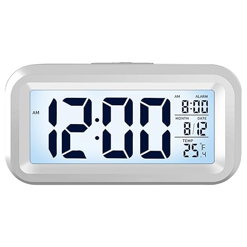 apm Snooooze digital väckarklocka för sovrum, batteridriven skrivbordsklocka, digital väckarklocka med smart nattlampa, 12/24 timmars display - datum, för tonåringar, vuxna och barn, vit, 425032