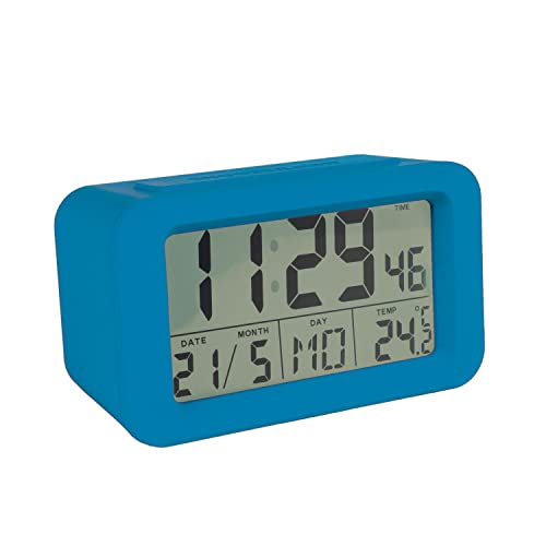 apm Snooooze digital väckarklocka för sovrum, batteridriven skrivbordsklocka, digital väckarklocka med smart nattlampa, 12/24 timmars display - datum, för tonåringar, vuxna och barn, blå, 425033