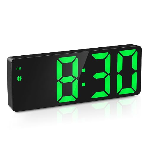 ORIA LED digital väckarklocka, modern bordsklocka, larmklocka med ljudkontroll, 3 ljusstyrka/3 larm justerbar, datum/tid/temperatur, batteri/USB-driven – grön