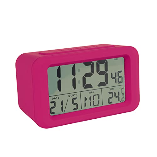 apm Snooooze digital väckarklocka för sovrum, batteridriven skrivbordsklocka, digital väckarklocka med smart nattlampa, 12/24 timmars display - datum, för tonåringar, vuxna och barn, rosa, 425034