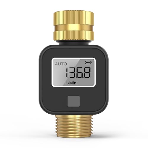 OBEST Digital vattenmätare, 4 lägen för kontroll av vattenförbrukningen, flödesmätare vatten med mässingsinlopp-metallgänga för trädgårdsslangen
