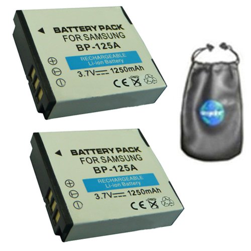 amsahr Digital ersättning kamera och videokamera batteri för Samsung IA-BH125A, HMX-M20/Q100 2-pack med 2 - Inkluderar linstillbehörspåse