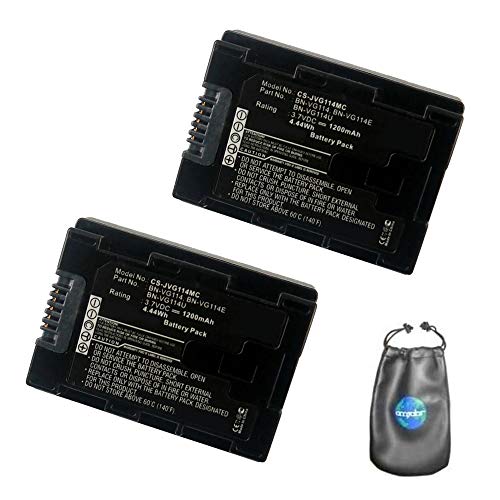Amsahr digital ersättning kamera och videokamera batteri för JVC BN-VG114, BN-VG138GZ-HM845 2-pack - Inkluderar linstillbehörsväska