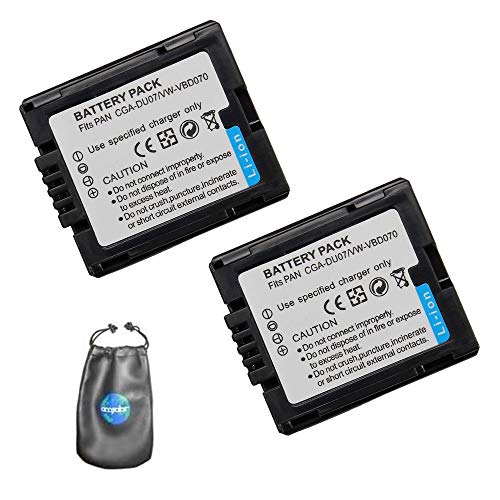 Amsahr digital ersättning kamera och videokamera batteri för Panasonic CGA-DU06, DU07, DU14 pack med 2 – inkluderar linstillbehörspåse