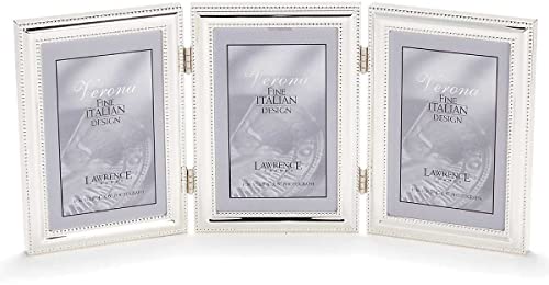 Lawrence Frames Fotoram med gångjärn, trippel (stående), silverpläterad metallram med vackra pärlor, 10 x 15 cm (4 x 6 tum) (510746T)