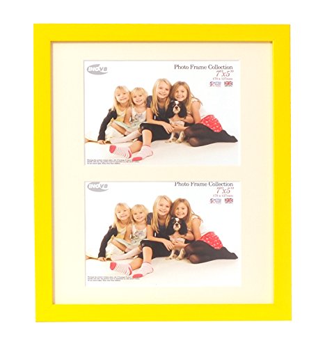 Inov8 Brittisk tillverkad traditionell bild/fotoram, kanariegul, 30 x 10 tum dubbel öppning med två 7 x 5 tums insatser