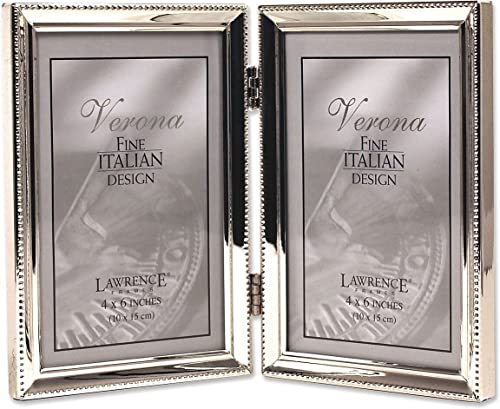 Lawrence Frames Verona 11646D Fotoram med gångjärn och pärlkant, 10 x 15 cm (4 x 6 tum), dubbel, silver