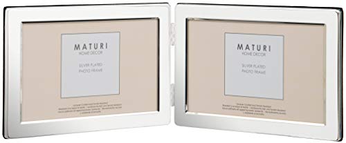Maturi silverpläterad dubbel fotoram - porträtt med platt kant, 10 x 15 cm (4 x 6 tum)