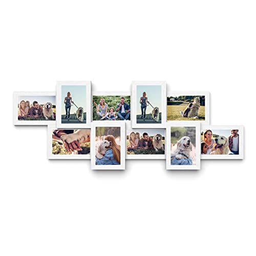 SONGMICS Fotoram collage för 10 foton i 10 x 15 cm (4 x 6 tum) bildram väggmonterad, montering krävs, vit träfiber RPF21W