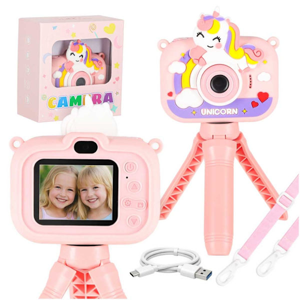 Digitalkamera för barn med stativ – Enhörning rosa