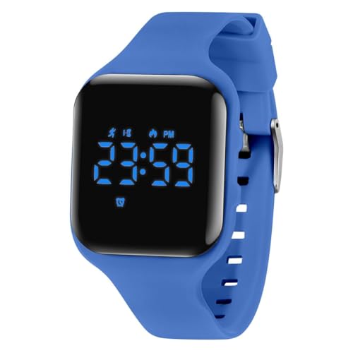 aswan watch digitalklocka, barn, flickor, pojkar, med stegräknare, väckarklocka, stoppur, ljus, datum, sportarmbandsur utan app och mobiltelefon med silikonarmband, 16 marinblå, Sportig