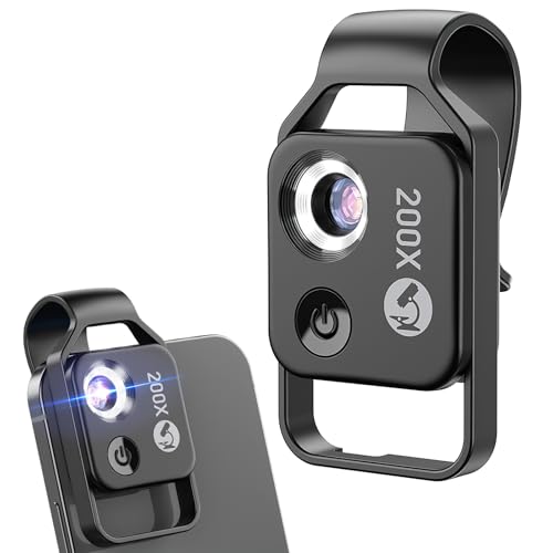 OBEST Smartphone-mikroskop med telefonklämma, 200X HD digitalt mikroskop med CPL lins och LED-ljus, elektroniskt mikroskop kompatibelt med iPhone och Android-mobiltelefoner (svart)